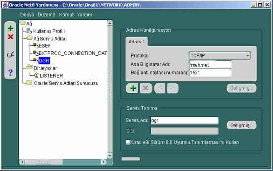 (ADDRESS = (PROTOCOL = TCP)(HOST = mehmet)(PORT = 1521)) )