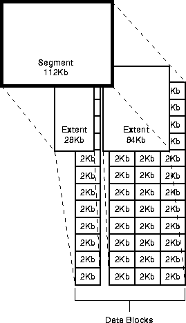 Oracle veritabanında verilerin depolandığı en küçük birim veri bloğu olarak adlandırılır. Bir veri bloğu veritabanının depolama alanı üzerindeki belli bir byte uzunluğuna karşılık gelir. Veri bloğunun uzunluğu veritabanı oluşturulurken belirlenirVeri bloklarının bir üst birimi genişleme olarak adlandırılır. Bir genişleme art arda olan belirli sayıda veri bloğundan oluşur. Genişleme'lerin bir üst birimi de parça'lardır.