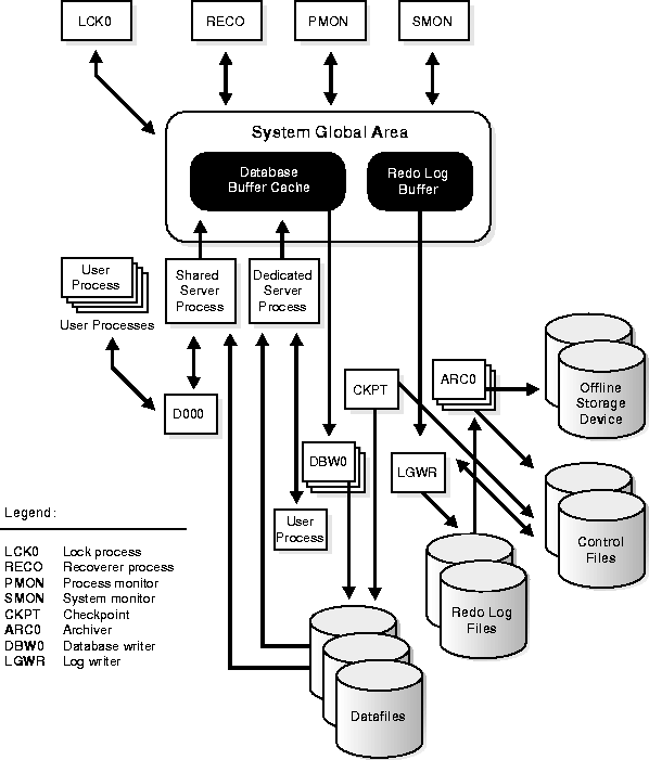 Normal veritabanı işlemleri boyunca bir veri dosyası içerisindeki veriler okunur ve Oracle için ayrılan belleğe getirilirler. Örneğin bir kullanıcının veritabanındaki bir tablonun verilerine erişmek istediğini varsayalım. Eğer istenilen veriler bellekte yer almıyorsa, ancak o zaman uygun veri dosyasından okunur ve belleğe getirilirler.
